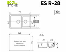 Кухонная мойка Ecology Stone R-28-331 белый 770x500мм