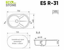 Кухонная мойка Ecology Stone R-31-345 шоколад 750x480мм