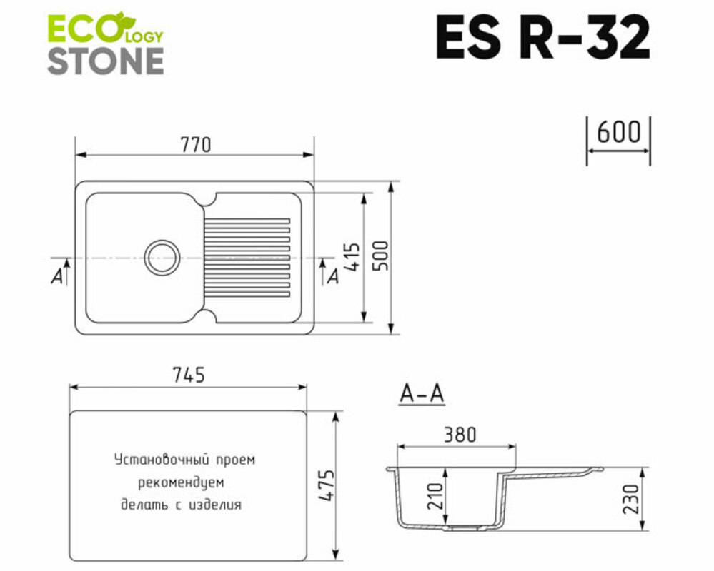Кухонная мойка Ecology Stone R-32-345 шоколад 770x495мм