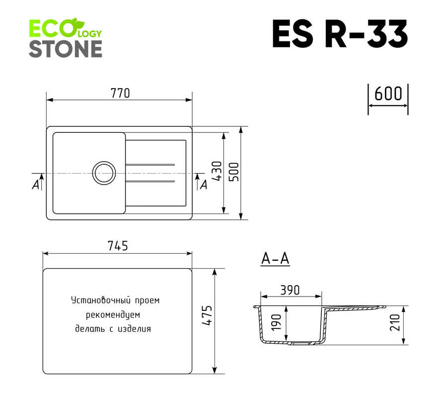 Установочный проем: 745 x 475 мм