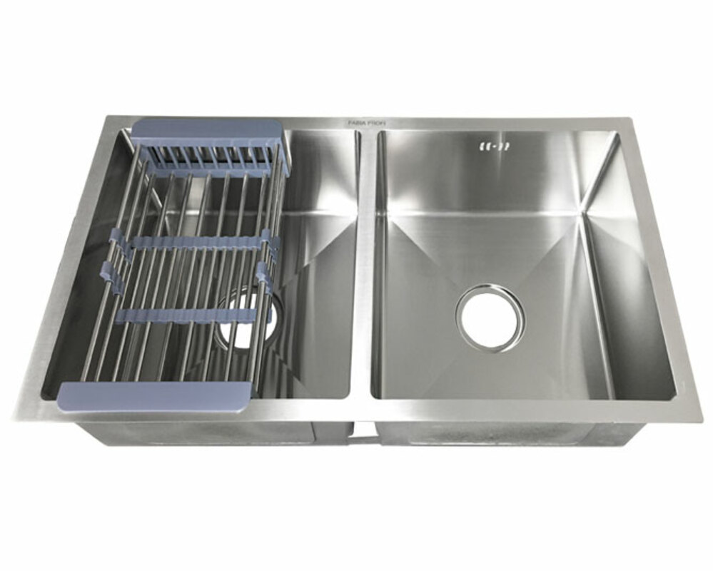 Мойка врезная 80,5х44 см, ДВОЙНАЯ, толщина основания 3,0 мм, чаша 0,8 мм ,глубина 200 мм + большой сифон с переливом. Сифон с углубленной горловиной, мусоросборником и крышкой.