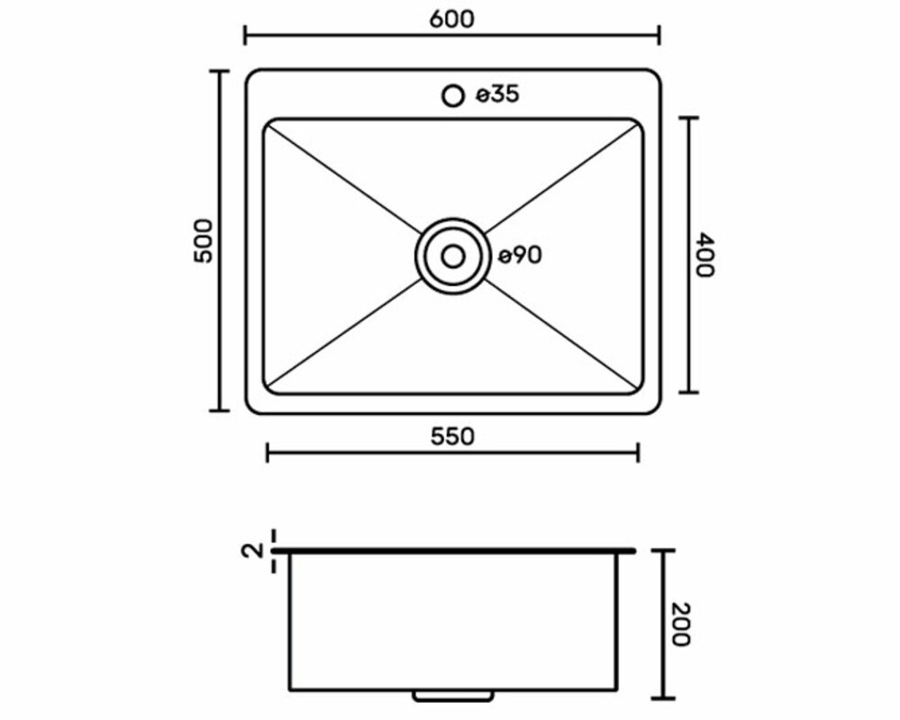 Габаритные размеры: ширина 600 мм, длина 500 мм, глубина 200 мм, толщина основания 2,0 мм, чаша 0,6 мм. Вес - кг, объём - м3.