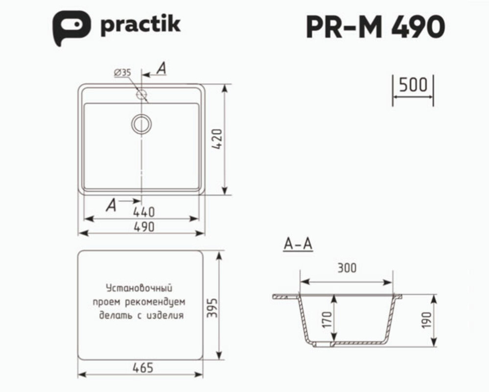 Кухонная мойка Practik PR-M 490-002 слоновая кость 490х420мм (без сливной арматуры)