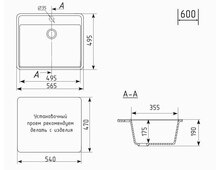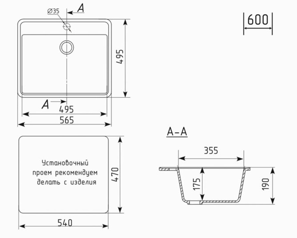 Установочный проем: 540 х 470 мм