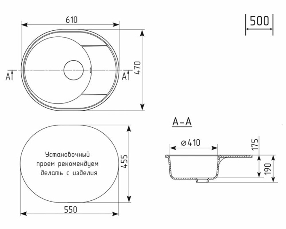 Установочный проем: 550 х 455 мм
