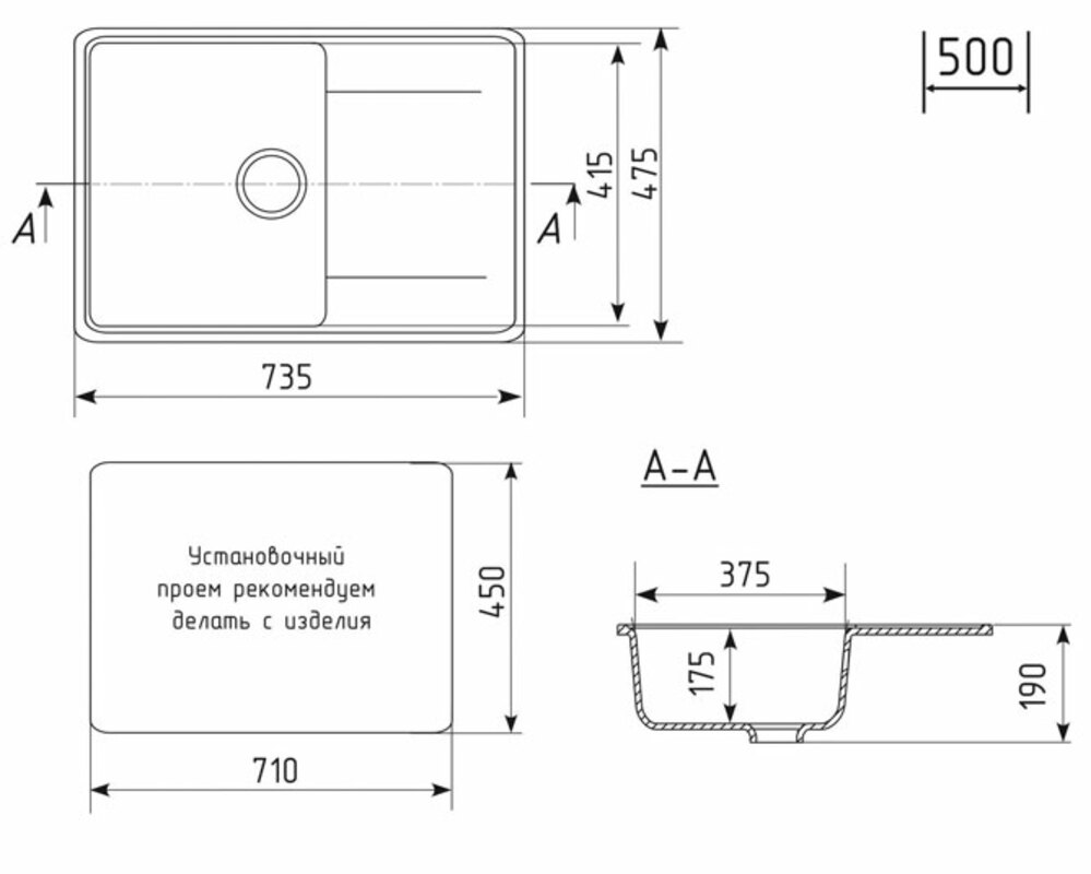 Мойка Practik PR-M 735-002 слоновая кость 735х475мм (без сливной арматуры)