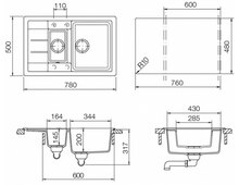 Учитывайте ширину пристенного канта при установке мойки возле стены или пенала. Все размеры приведены для установки мойки сверху столешницы.