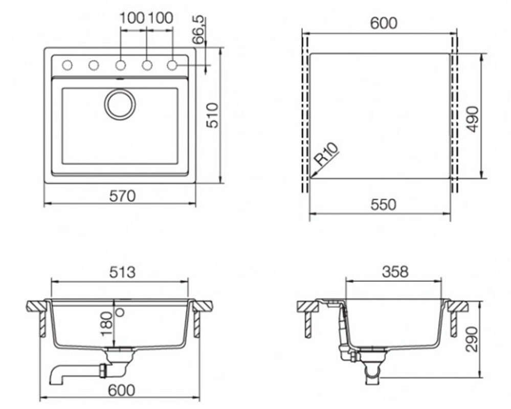 Размер выреза, мм 550x490 R10