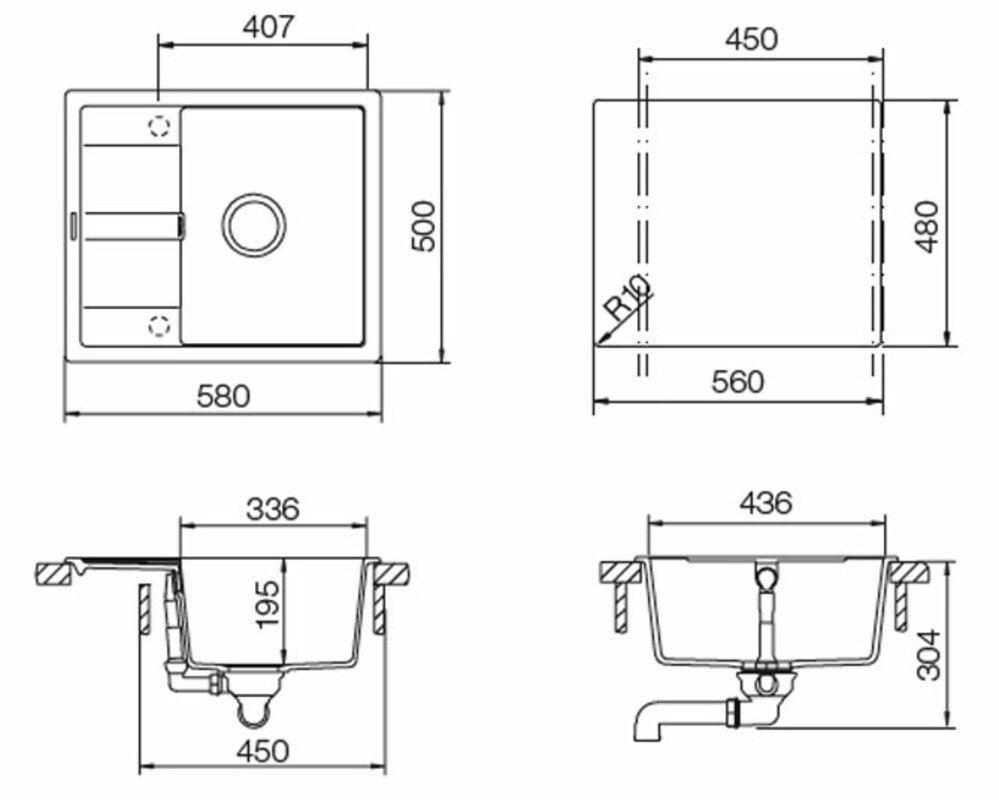 Размер выреза, мм 560x480 R10
