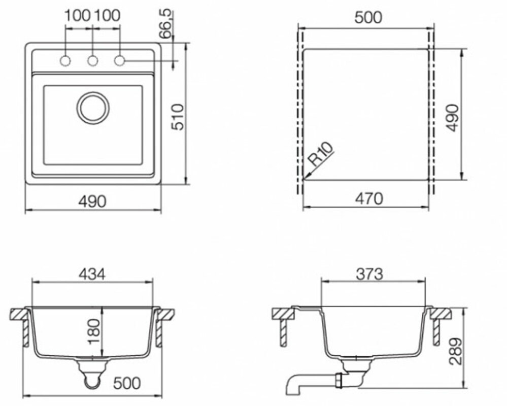 Размер выреза, мм 470x490 R10