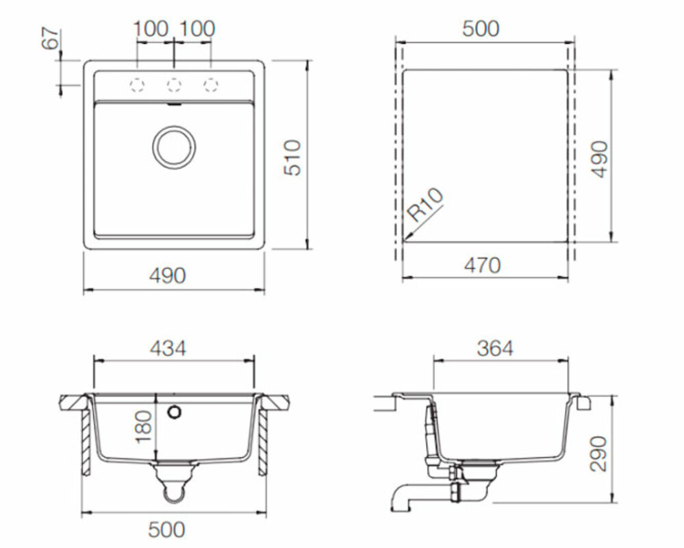 Размер выреза, мм 470х490 R10