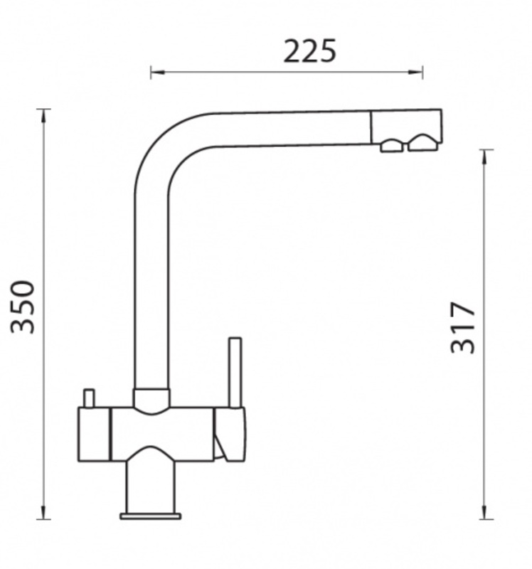 Вода после фильтра подается по отдельному водоводу и через отдельное отверстие в лейке смесителя.