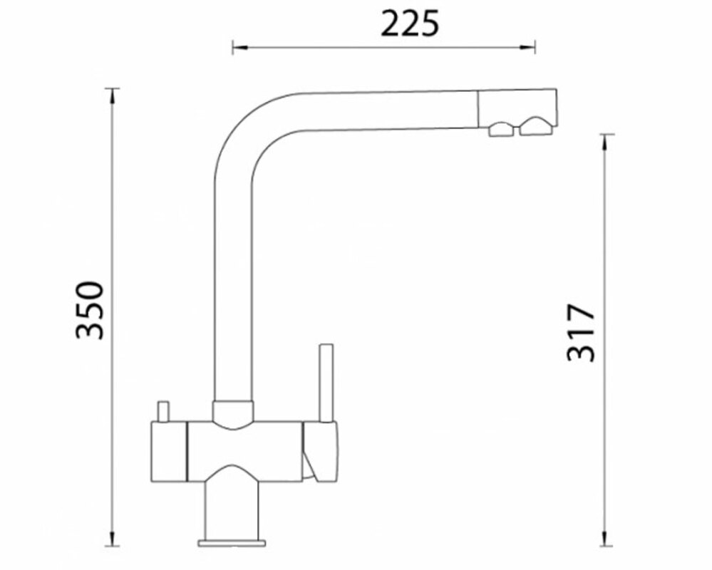 Вода после фильтра подается по отдельному водоводу и через отдельное отверстие в лейке смесителя.