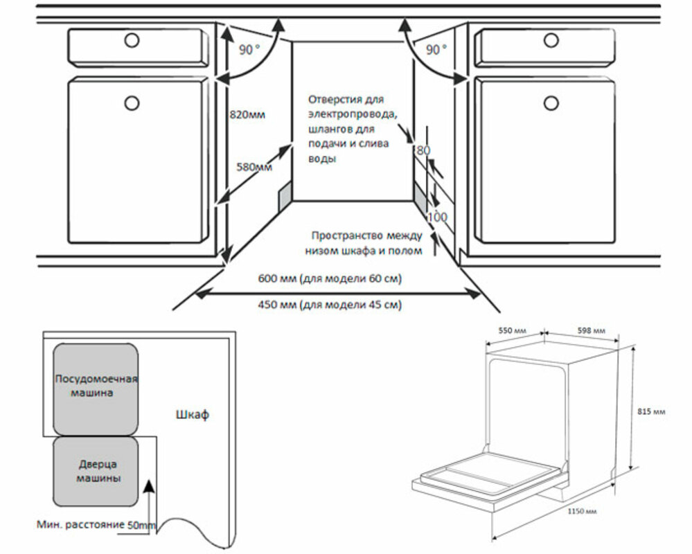 Модель рассчитана на 12 комплектов посуды и подходит для установки в стандартные кухонные гарнитуры шириной 60 см.