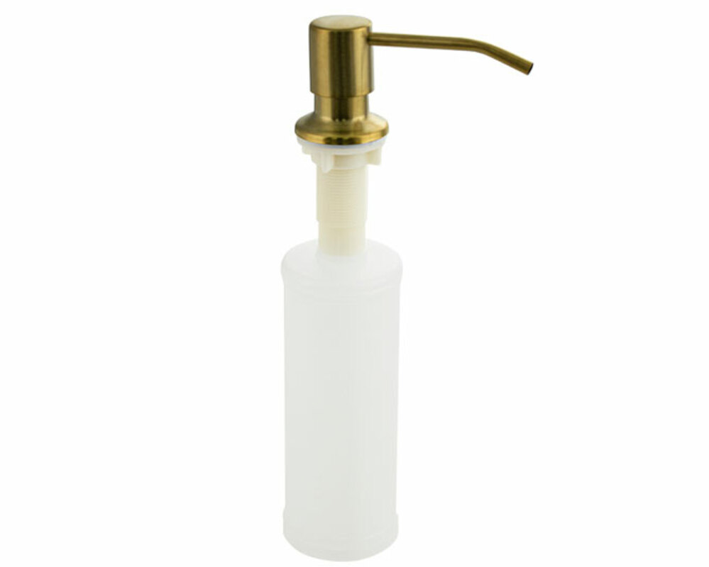 Дозатор для жидкого мыла и моющих средств, под золото, Врезной, под раковину, пластиковый, 500 мл, Габаритные размеры: высота 265 мм, ширина 110 мм, диаметр посадочного седла 40 мм, длины резьбы 65 мм