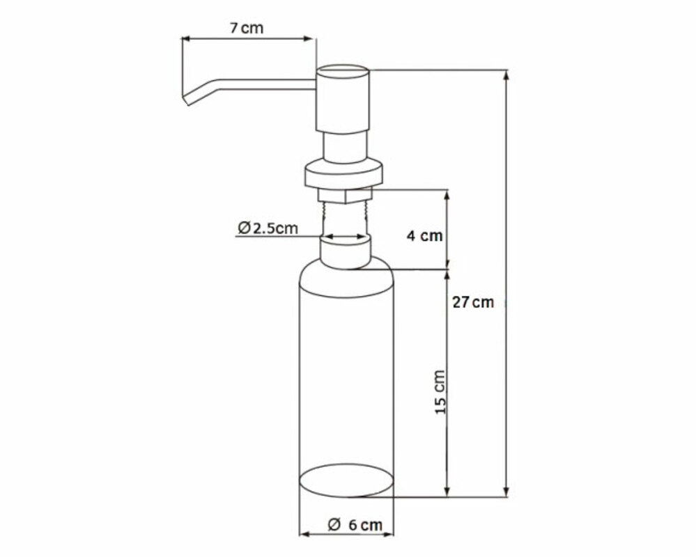 Дозатор не занимает много места на кухне и встраивается в кухонную мойку или столешницу. Основное предназначение: хранение жидкости для мытья посуды.