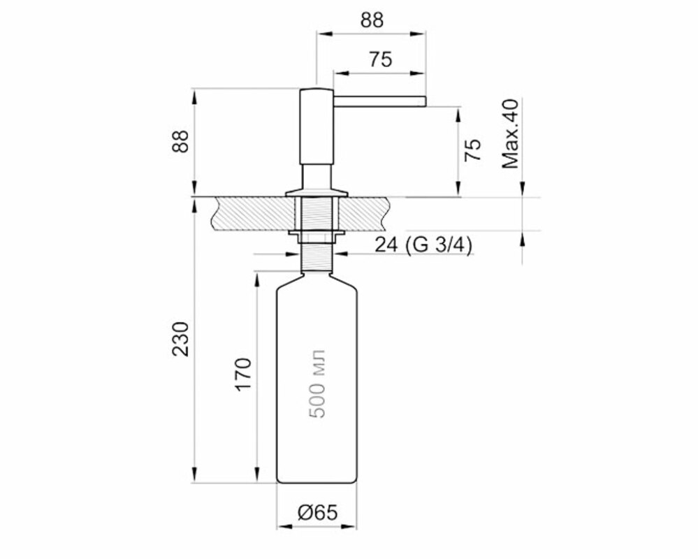 Простая установка в отверстие диаметром 25-30 мм — подходит для большинства моек.