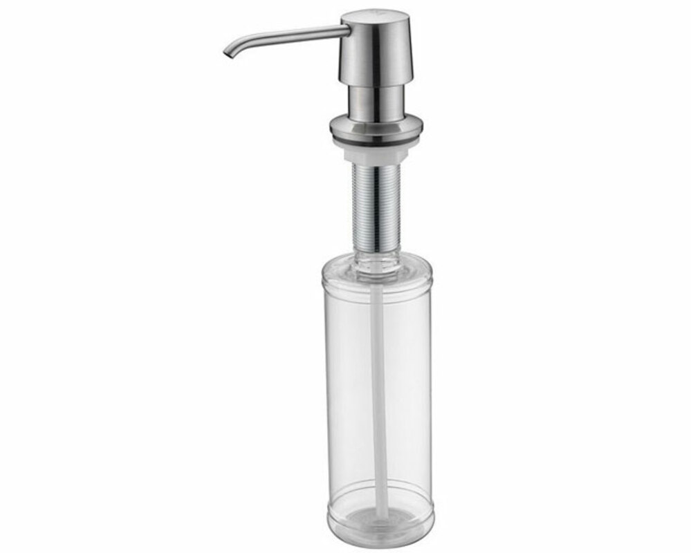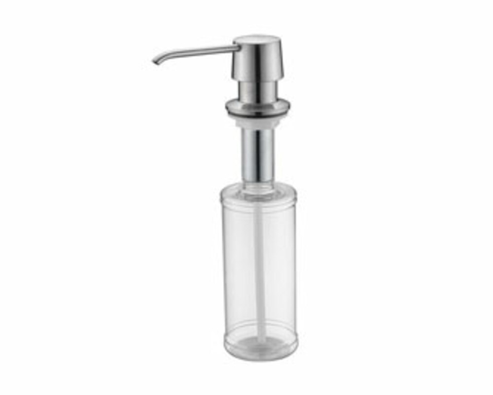 Дозатор для кухни или ванной, встраиваемый, объемом 350 мл, матовая поверхность, изготовлен из латуни и пластика.