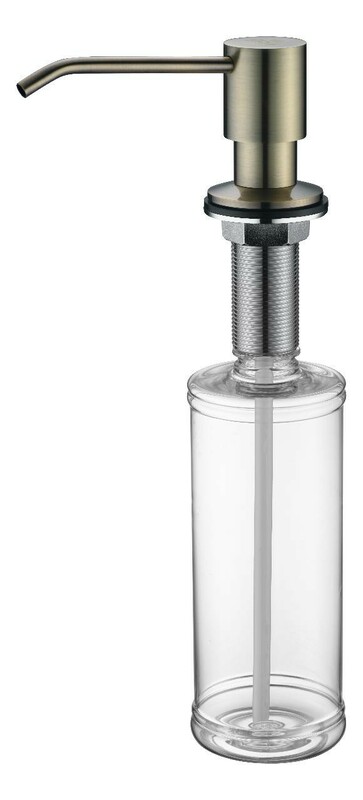 Дозатор для кухни или ванной серии Rein, встраиваемый, объемом 350 мл, матовая поверхность, изготовлен из латуни и пластика.