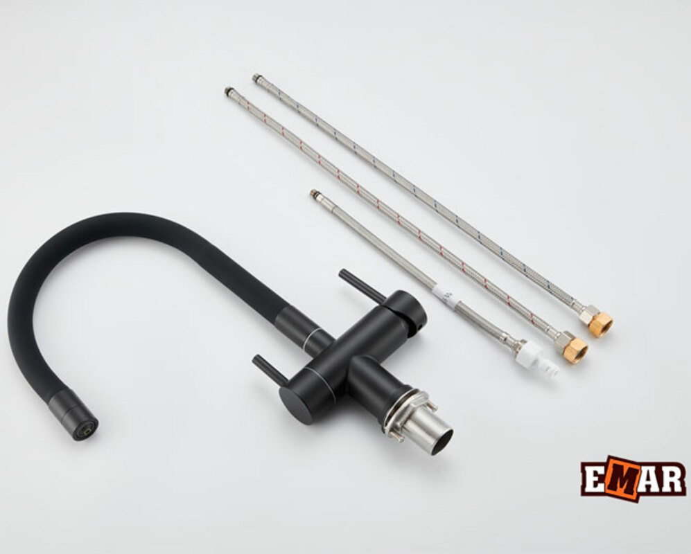 Смеситель для кухни из нержавеющей стали EMAR ЕС - 3015 Black. Смеситель с возможностью подключения фильтра питьевой воды. Смеситель с керамическим дисковым картриджем. Рабочая температура подачи воды до 80 °С.