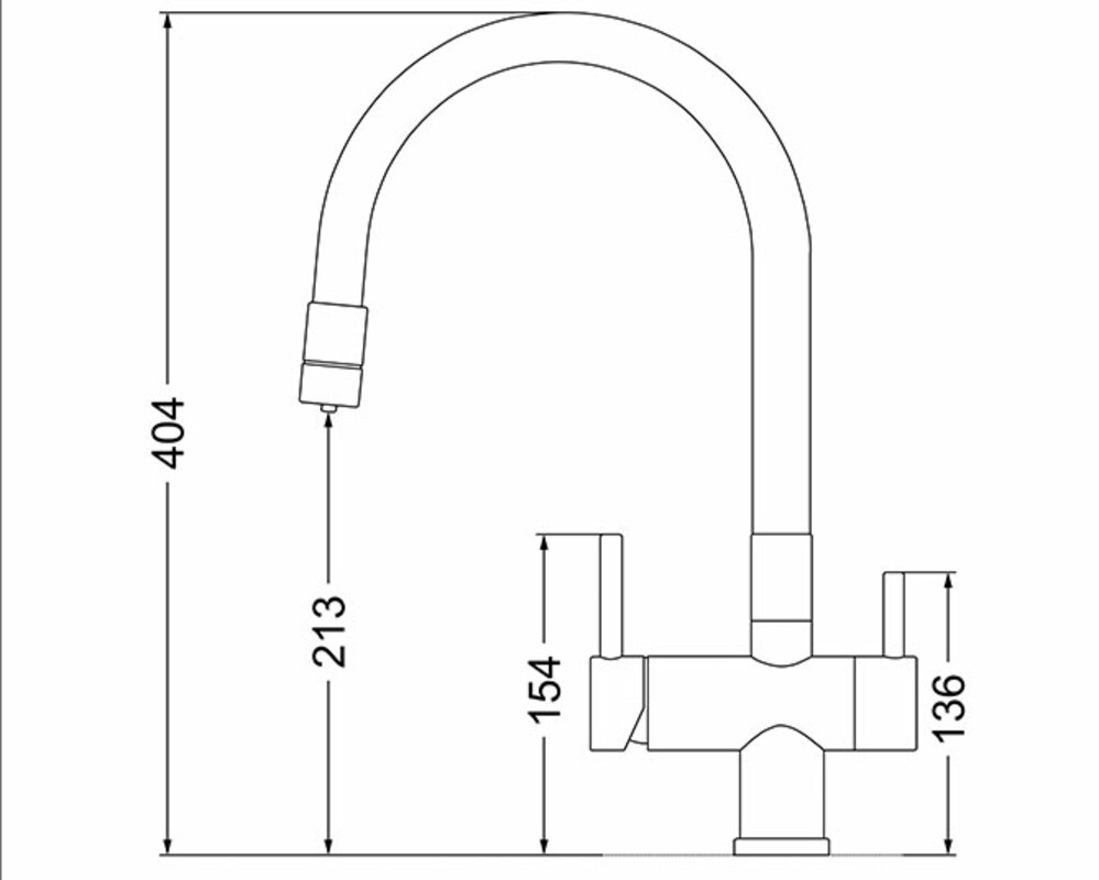 Кухонный смеситель с возможностью подключения фильтра для очистки воды. Фильтрованная вода подается отдельной ручкой через отдельную трубку и не смешивается с водопроводной водой. Однорычажное управление поможет легко регулировать температуру и напор подачи воды.