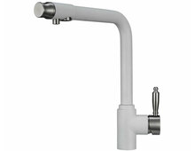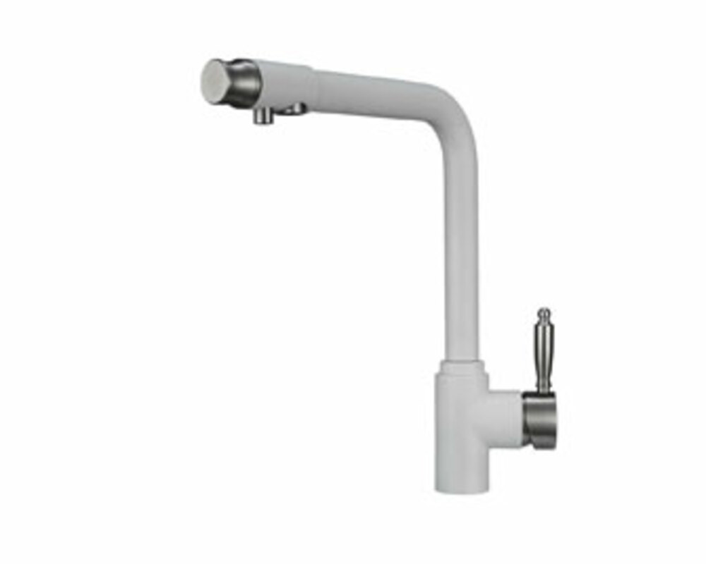 Смеситель для кухонной мойки Granula 2301 изготовлен из высококачественного инновационного материала. Корпус из нержавеющей стали обеспечивает длительный срок службы. При этом высокий излив позволяет мыть как мелкую, так и крупногабаритную посуду. Модель смесителя Granula 2301 выполнена с краном для питьевой воды. Особенность смесителя Granula 2301, то что переключатель на фильтрованную воду находится на изливе смесителя, это удобно и практично. Фильтрованная вода подается по отдельной трубке и не смешивается с водопроводной водой.