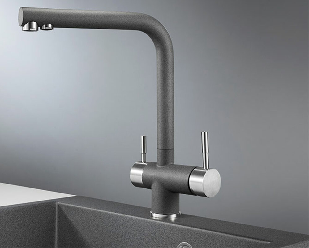 Смеситель для кухонной мойки Granula 2305 изготовлен из высококачественного материала. Корпус из нержавеющей стали обеспечивает длительный срок службы. При этом высокий излив позволяет мыть как мелкую, так и крупногабаритную посуду. Двухрычажная модель смесителя Granula 2305 выполнена с краном для питьевой воды. Фильтрованная вода подается по отдельной трубке и не смешивается с водопроводной водой.