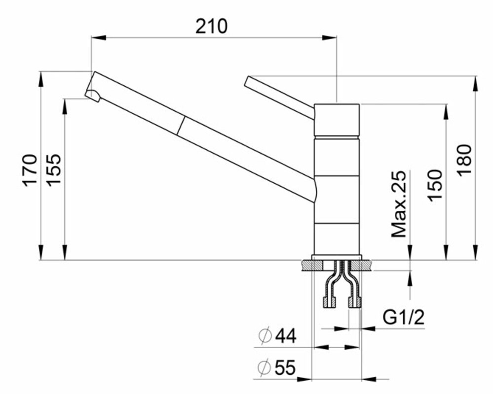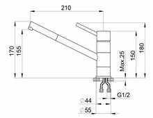 Высота излива 210 мм