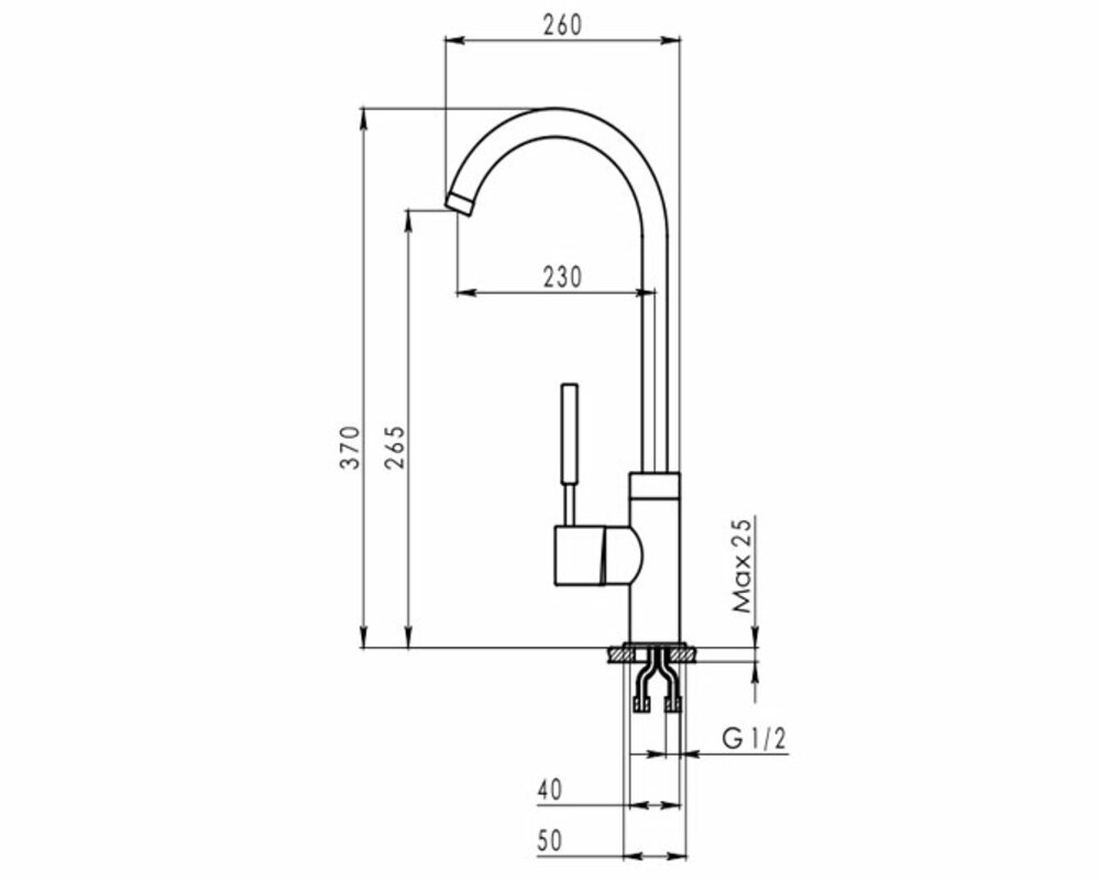Длина излива 260 мм