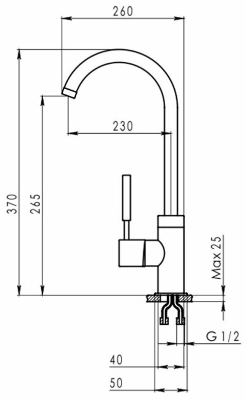 Длина излива 260 мм