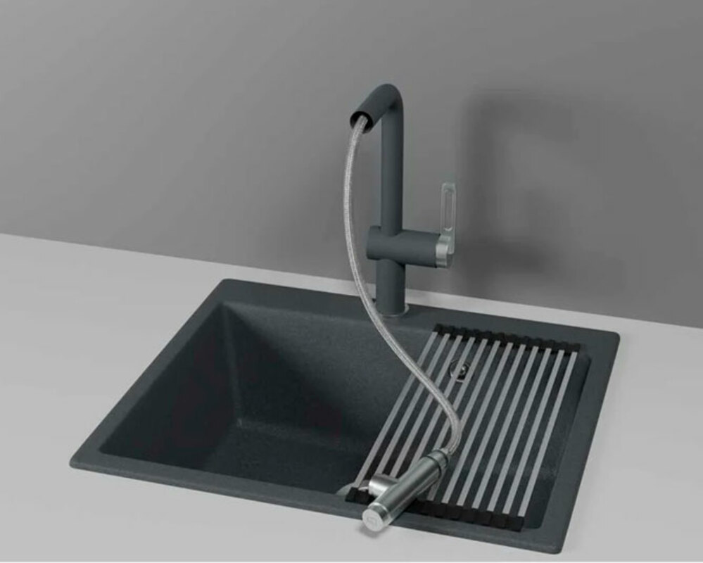 Модель выполнена в стильном цвете "графит", который идеально сочетается с кухонными мойками Granula аналогичного оттенка, создавая гармоничный ансамбль на вашей кухне. Благодаря специальному покрытию, смеситель сохраняет свой первоначальный вид на протяжении всего срока эксплуатации.