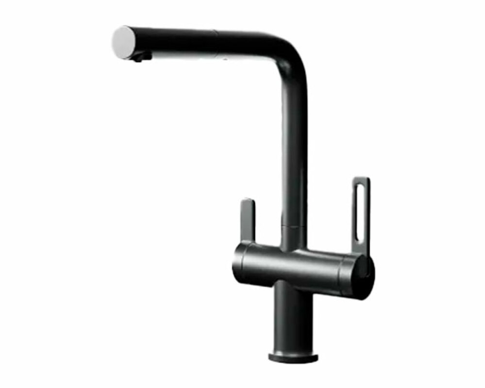 Смеситель имеет два рычага управления, а встроенный аэратор снижает расход воды и улучшает её подачу. Установка возможна на мойку или столешницу, благодаря отверстию диаметром 35 мм и гибким шлангам длиной 600 мм. Хромированное покрытие добавляет элегантности и легко сочетается с любым интерьером.