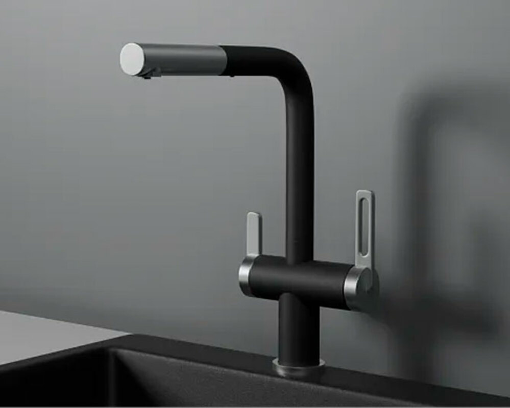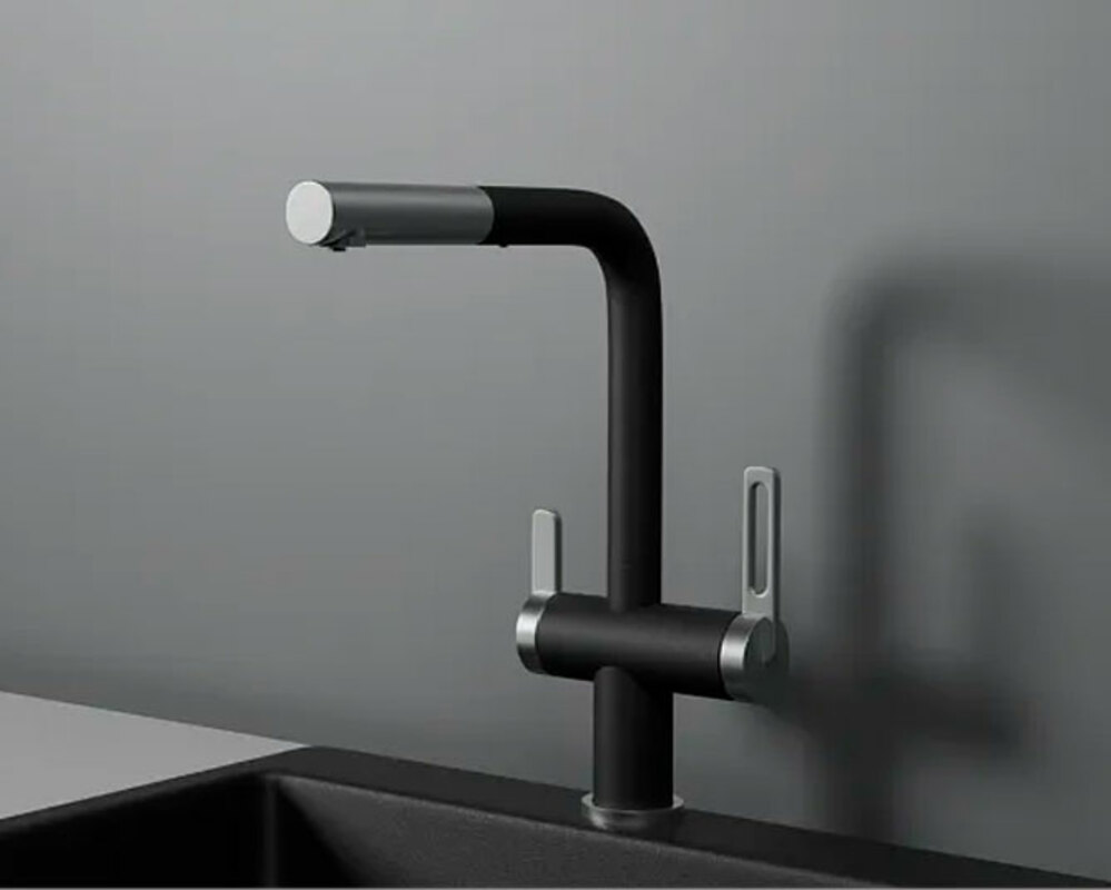 Кухонный смеситель с выдвижным изливом и подключением к фильтру от бренда Granula. Совмещает надежность, удобство и современный дизайн, обеспечивая комфорт в использовании.