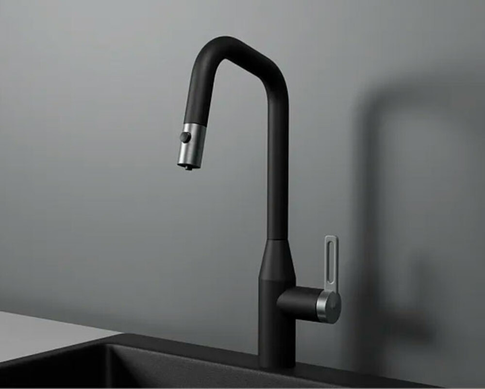 Кухонный смеситель с выдвижным изливом и подключением к фильтру от бренда Granula. Современный дизайн, высокая надежность и удобство в использовании делают его отличным выбором для кухни.