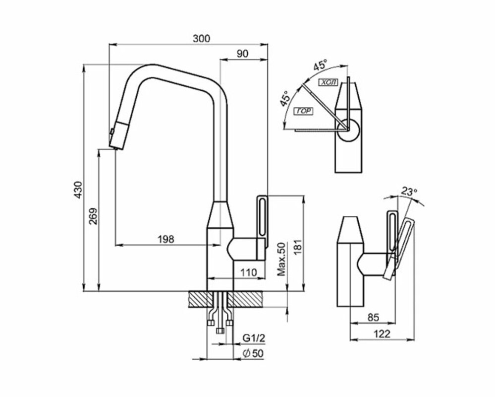 Выдвижной излив – увеличивает рабочую зону, облегчает мытье посуды и доступ к труднодоступным местам.