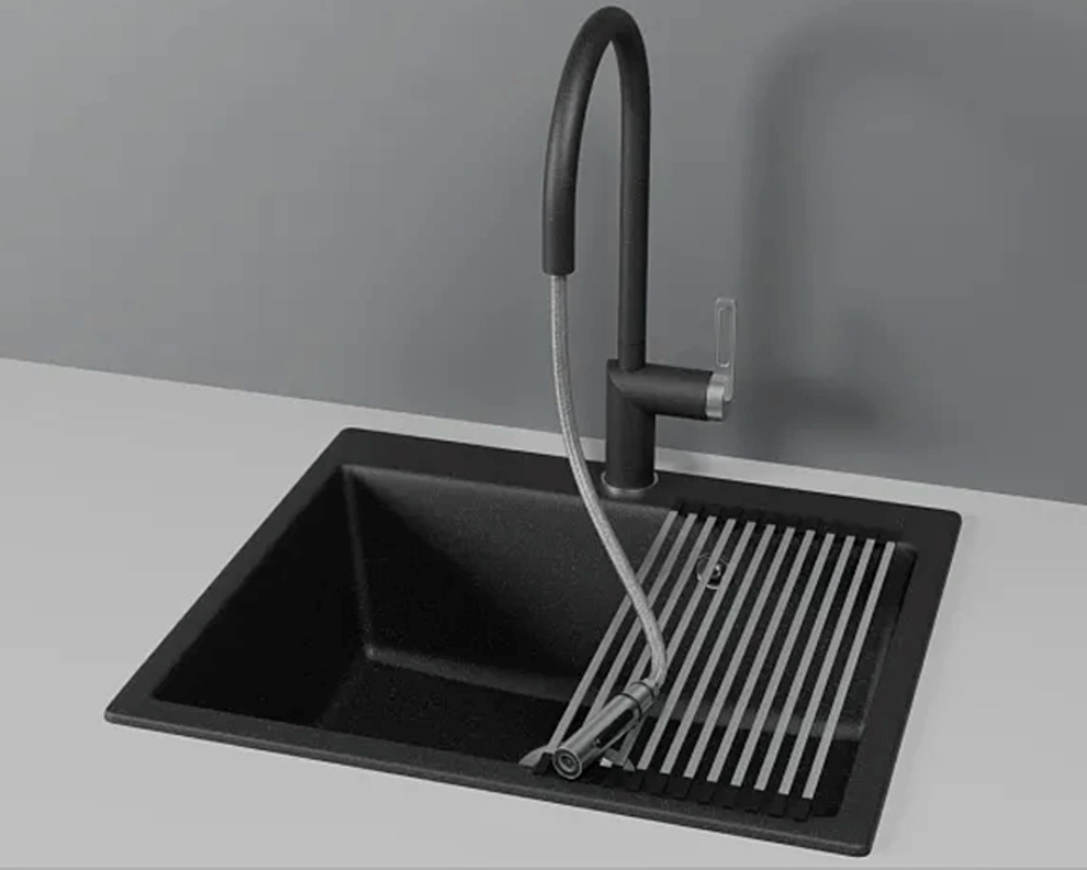 Выдвижной излив – увеличивает охват рабочей зоны и позволяет легко дотянуться до труднодоступных мест.