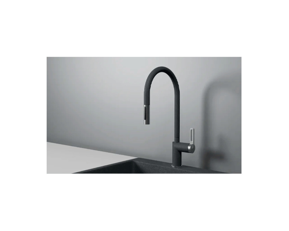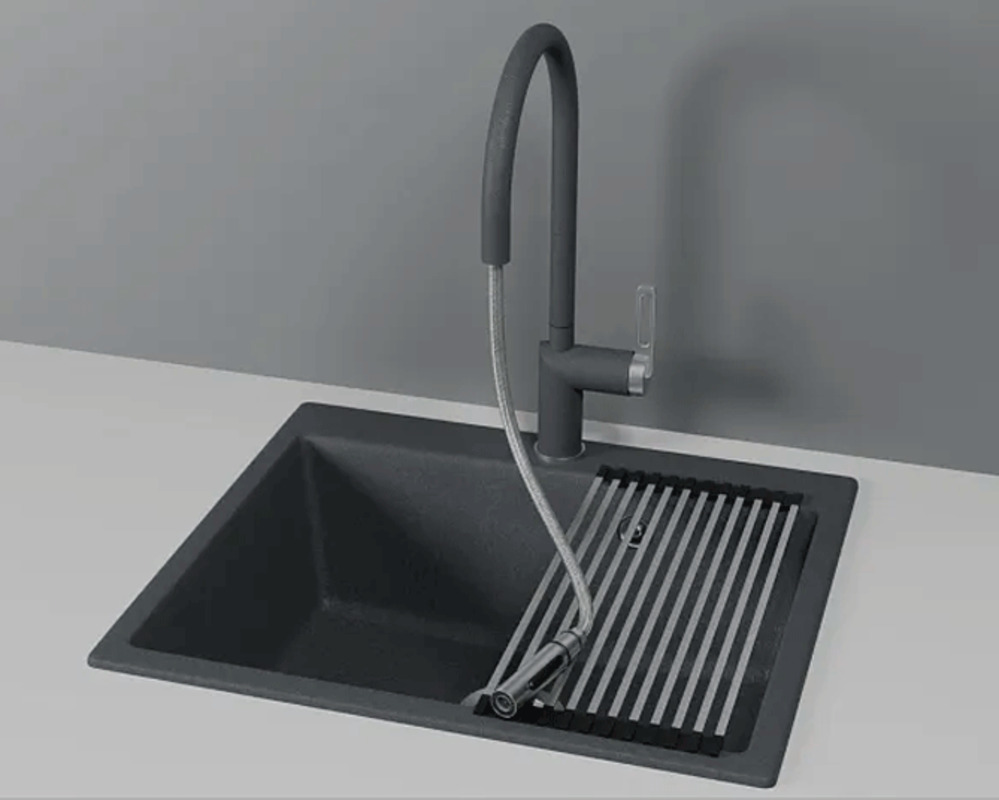 Выдвижной излив – увеличивает охват рабочей зоны и позволяет легко дотянуться до труднодоступных мест.
