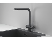 - Смеситель имеет двухканальный корпус, что позволяет использовать его как для обычной, так и для фильтрованной воды. Дополнительный изолированный канал для фильтрованной воды обеспечивает ее чистоту и отсутствие примесей в основном потоке.