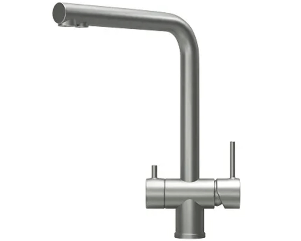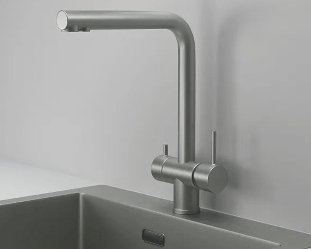 Смеситель имеет двухканальный корпус, что позволяет использовать его как для обычной, так и для фильтрованной воды. Дополнительный изолированный канал для фильтрованной воды обеспечивает ее чистоту и отсутствие примесей в основном потоке.