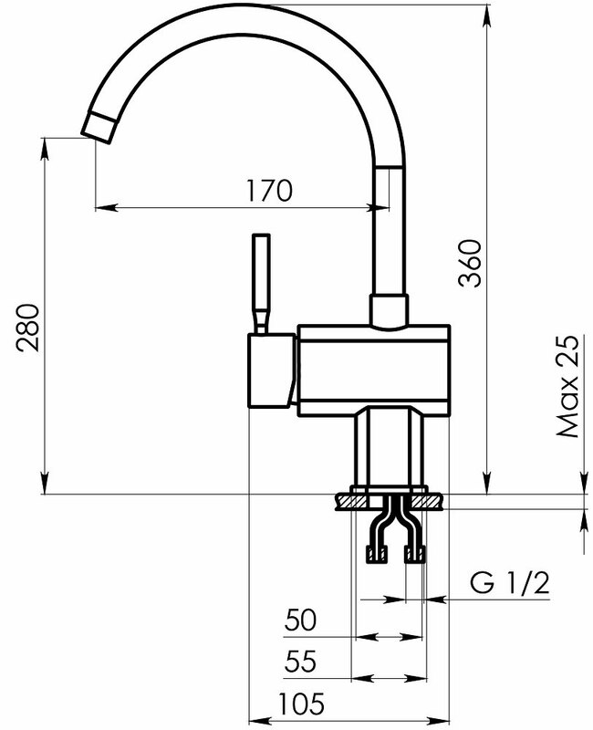 Достаточно высокий излив позволяет мыть как мелкую, так и крупногабаритную посуду.