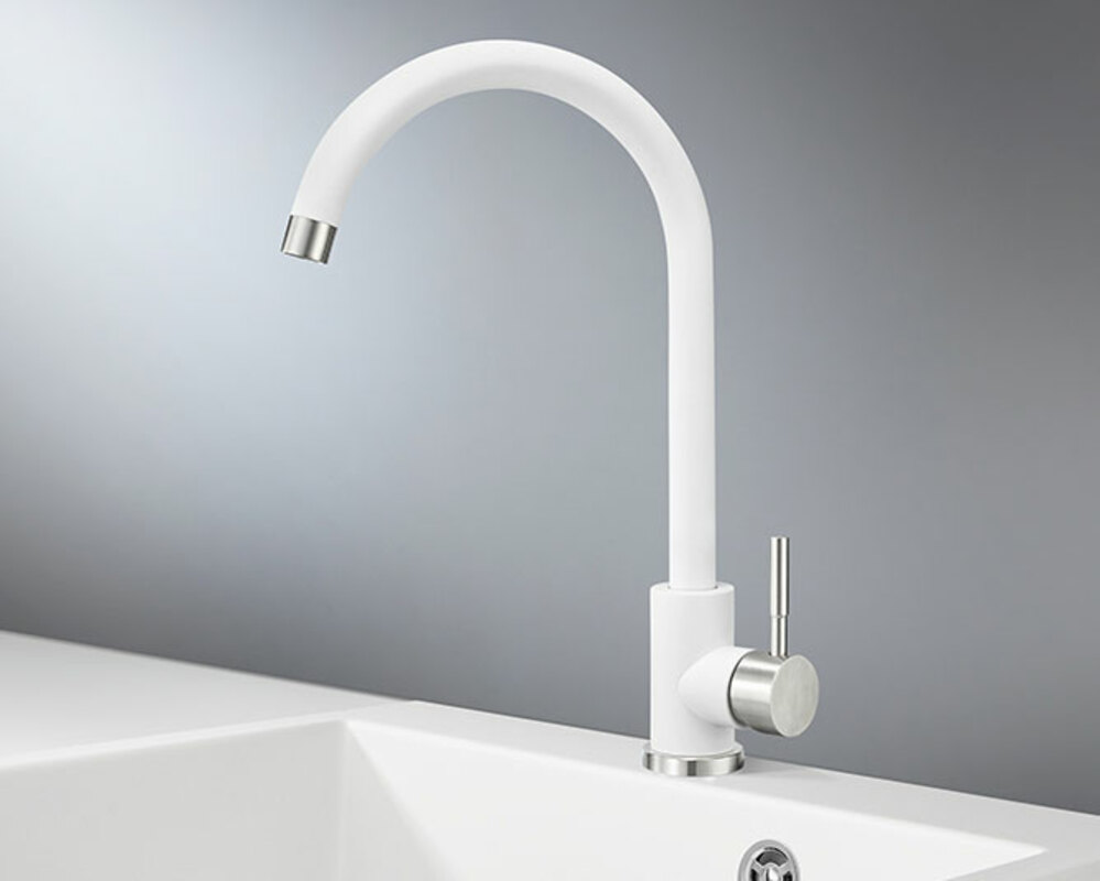 Отличительные черты: нержавеющая сталь, высокий излив для удобства мытья любой посуды и доступная цена.