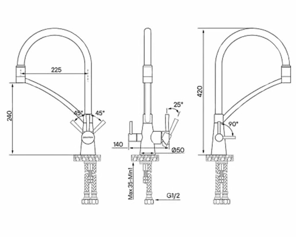 Эластичный излив. Съемный пластиковый аэратор, который обеспечивает мягкую струю, ровный и экономичный поток воды.