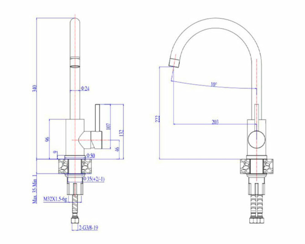 Высота смесителя 340 мм