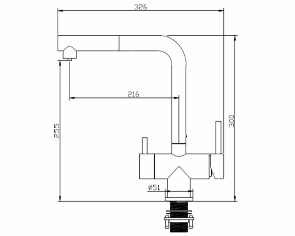 Смеситель с возможностью подключения фильтра питьевой воды и выносным душем.