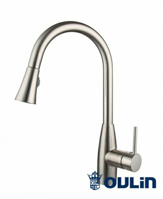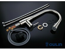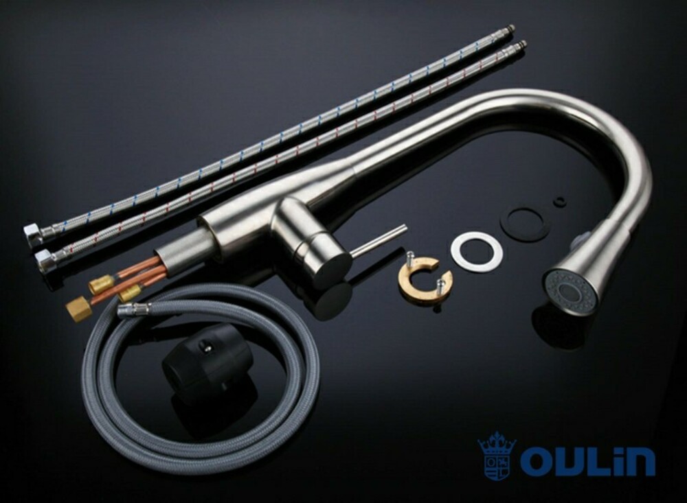 Смеситель для кухни (поверхность сатиновая) в мойку OL-8016 — сделан из латуни. Смеситель с поворотным изливом и выносным душем. Данный кран имеет удобную ручку для плавного переключения воды и сенсор для подачи и остановки воды (реализовано две функции за подачей воды — механическая и сенсорная).