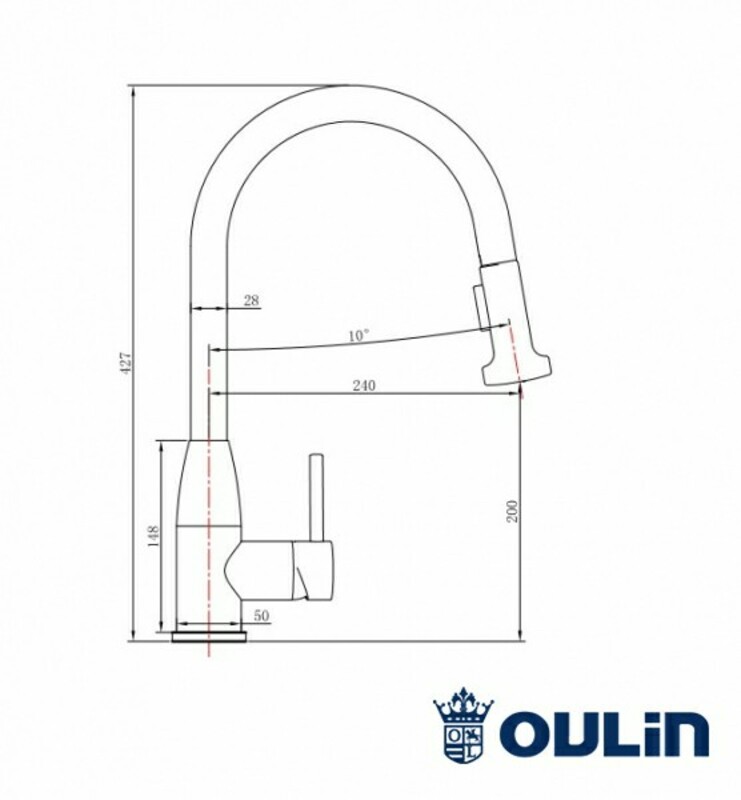 Смеситель обладает удобным изгибом на основании. Выносной душ удобен для мыться отдельных частей мойки. Дизайн смесителя сделан в современном стиле. Высота смесителя 427 мм позволит удобно мыть большие кастрюли. Подойдет практически в любые кухонные раковины.