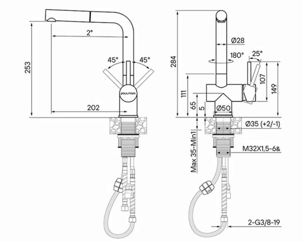 Технические характеристики Paulmark Dosse Do214418-418 черный металлик с выдвижным изливом: