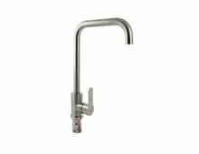 Смеситель для кухонной мойки и раковин, литой матовый корпус, из нержавеющей стали марка 304, с высоким литым П-образным изливом, шаровый, Крепление резьба - гайка, картридж d = 35 мм, ручка литая, Аэратор для экономии воды. Такая модель может использоваться на домашней кухне, на даче, в медицинских учреждениях и общественных местах. Габаритные размеры: высота 350 мм, длина 225 мм, диаметр посадочного седла 54 мм, длина резьбы 60 мм, длина подводки 500 мм, вес - 1,800 кг, объём - 0,00635 м3. В комплекте паспорт, корпус с изливом, подводка 1/2, крепеж, набор прокладок