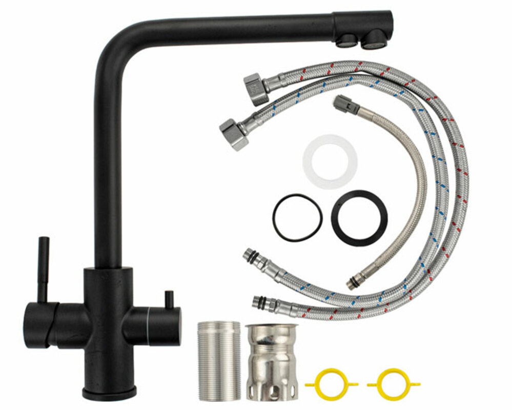 Смеситель 91121 Г-образный, ЧЕРНЫЙ, с подкл. фильтра, из нерж. стали 304