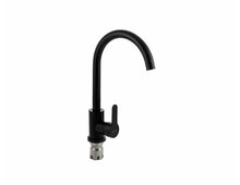 Смеситель для кухонной мойки и раковин, литой матовый корпус чёрного цвета, из нержавеющей стали марка 304, с высоким С-образным изливом, шаровый,